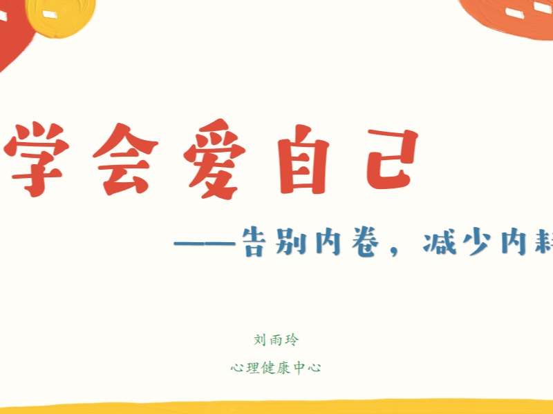 2月26日晚,学工处心理健康教育中心面向全校学生举行了心理健康主题讲座。此次讲座的主题为“学会爱自己——告别内卷,减少内耗”,是“万师润万心”系列讲座之一。讲座由心理健康教育中心刘雨玲老师主讲。