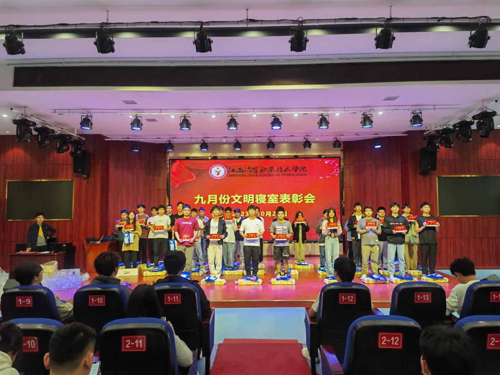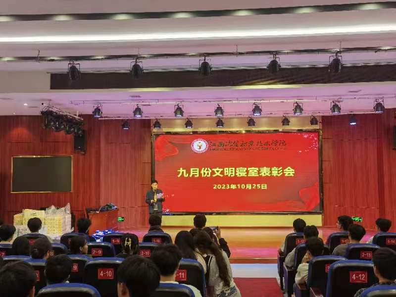 2023年10月25日上午,我校在图书馆报告大厅召开文明宿舍表彰大会。158个宿舍收到表彰。