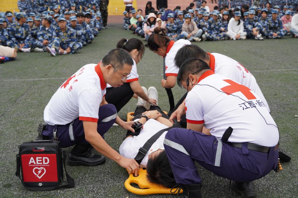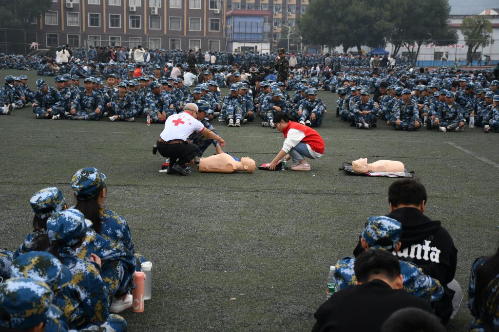 2023年10月14日上午,在校田径运动场,学校开展了2023级新生应急救护知识培训活动。全体军训新生6000余人分批次参加了培训,新余市红十字会的应急救护师资和学校应急救护师资一起,为2023级新生送上应急救护普及知识和技能。本次活动由学工处承办。