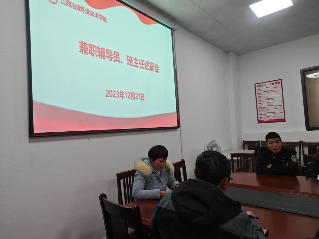 2023年12月21日下午,学生工作处在图书馆一楼114室召开2023年兼职辅导员、班主任工作述职会,学工处处长付正根,辅导员刘伟,各分院兼职辅导员、班主任参加会议。会议由付正根主持。