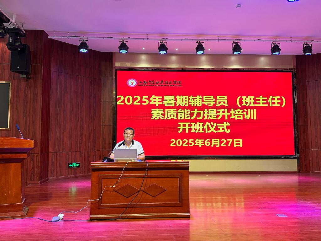 6月27日—28日,我校举行2025年暑期辅导员(班主任)素质能力提升培训,全体专兼职辅导员、班主任参加,学生工作处处长付正根主持本次培训。