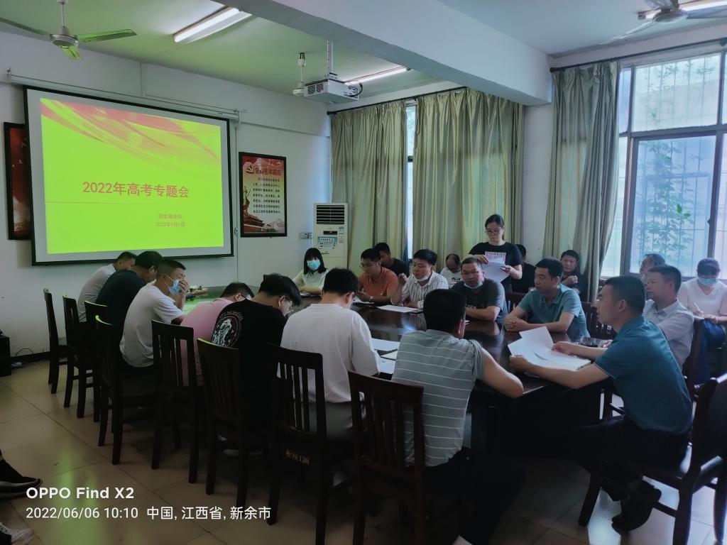 为顺利完成本次高考工作,招生就业处从考前专门组织召开高考专题会,做了充分的准备。在6月7日、8日、9日高考期间,招生就业处、各班主任全天候送考、在考场外守候。在考试过程中有考生准考证丢失,招生就业处杨红老师第一时间去渝水区教育局为考生补办准考证并送至考场交给考生。学生在考前一天发现发烧情况,班主任半夜骑电动车带学生去医院就医。一系列工作体现了学院对同学们的关心、爱护。