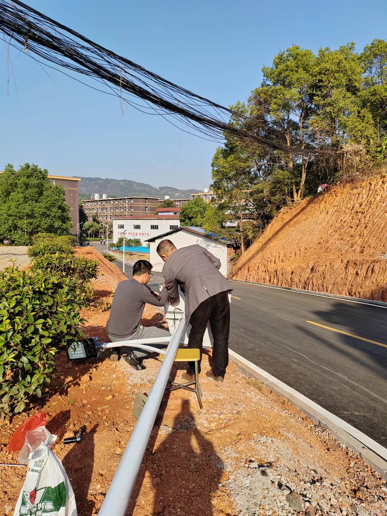 新学期开学以来,学校新修了一条樟树林道路。但是在6#7#公寓东面这段路上却还没有路灯,晚上没有灯光,道路漆黑,通行存在安全隐患。为进一步夯实校园安全设施基础,预防校园安全事故发生,10月14日——10月15日上午,后勤保障处副处长游永平、黄伟会同施工人员加班加点在此段路上安装了10盏太阳能灯,方便了学院师生的出行,也给学院增加了一道靓丽的风景。