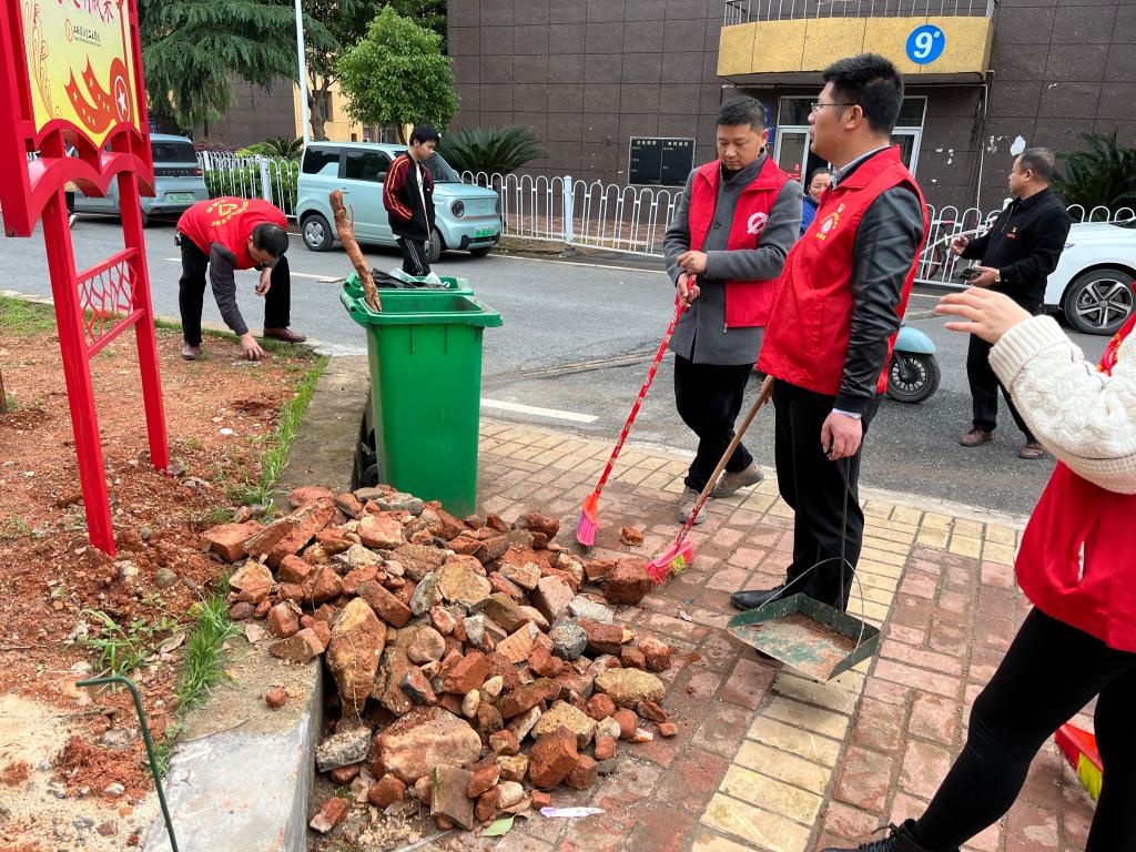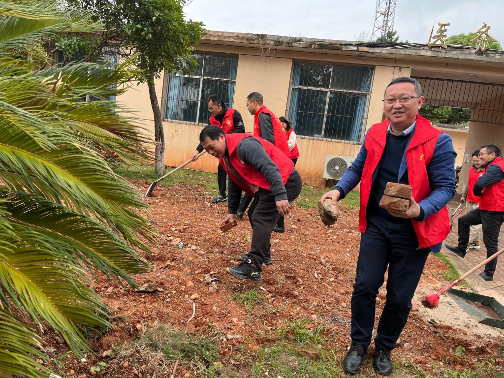 活动现场,各位党员志愿者们手持铁锹、扫把、小铲等清洁工具,团结协作,本着“不怕脏,不怕累,把责任当使命”的精神,在医务所周围认真地清扫花圃、草坪和公共区域内的砖头、碎石、水泥废料等废弃物。