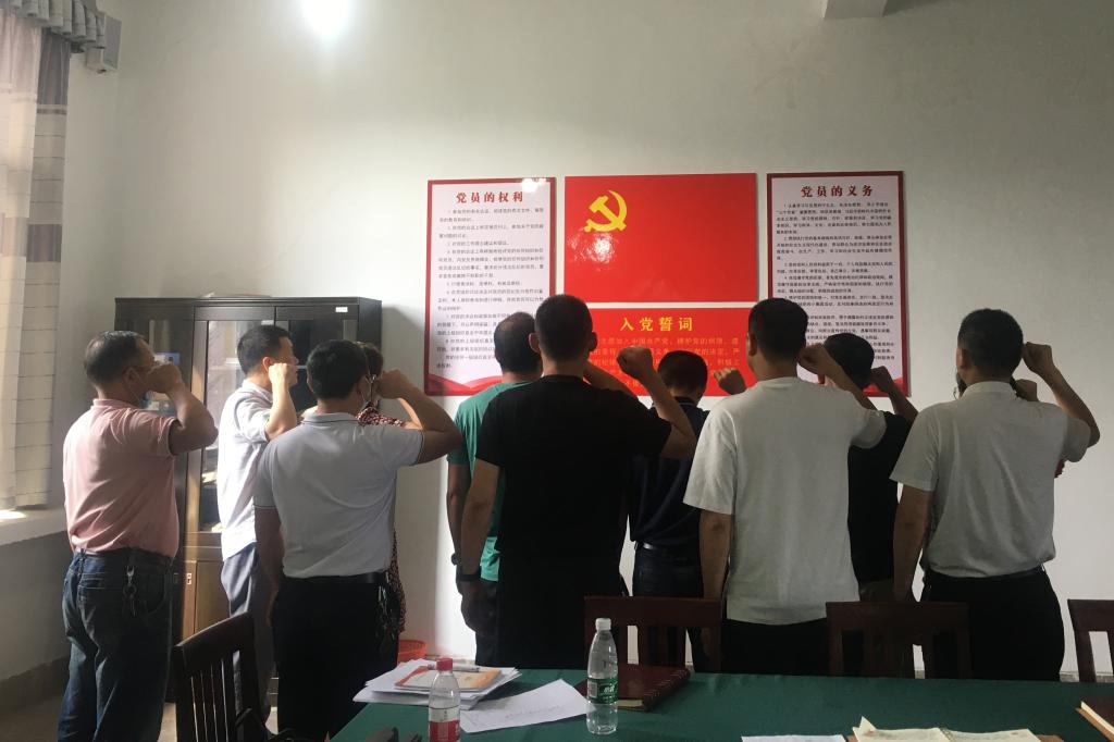 活动伊始,全体党员面对党旗,重温了入党誓词。