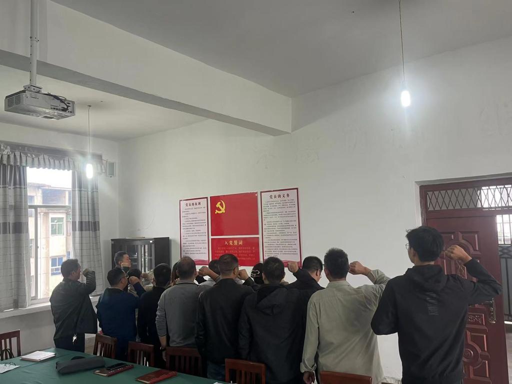 最后,全体党员重温入党誓词:“我志愿加入中国共产党,拥护党的纲领……”全体党员面对鲜红的党旗重温入党誓词,举起的右手是他们肩负起的重担,口中的誓词是他们决心的见证,坚定的眼神是他们忠诚的彰显。