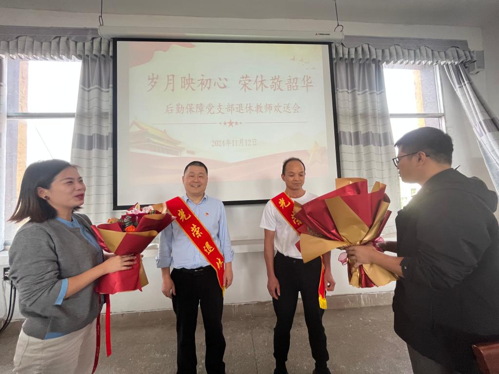 11月12日下午,后勤保障党支部举行了一场温馨而庄重的教师荣休欢送会,为陈贵斌老师和范富春老师送上了最真挚的祝福与感谢。