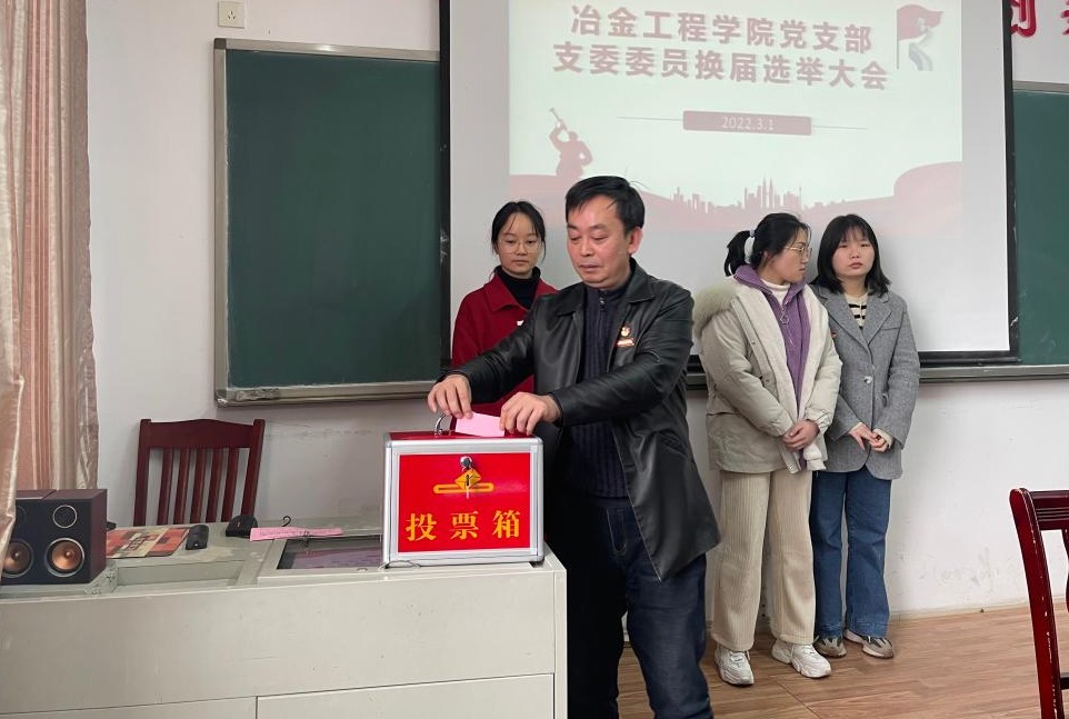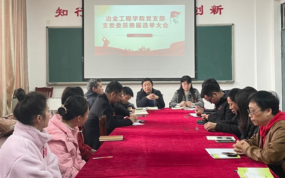 2022年3月1日下午2:00,冶金工程学院党支部在新一教208党员活动室召开支委委员换届选举大会。大会由万美茜主持,支部挂点领导、学院纪委书记谢向莹出席会议。
