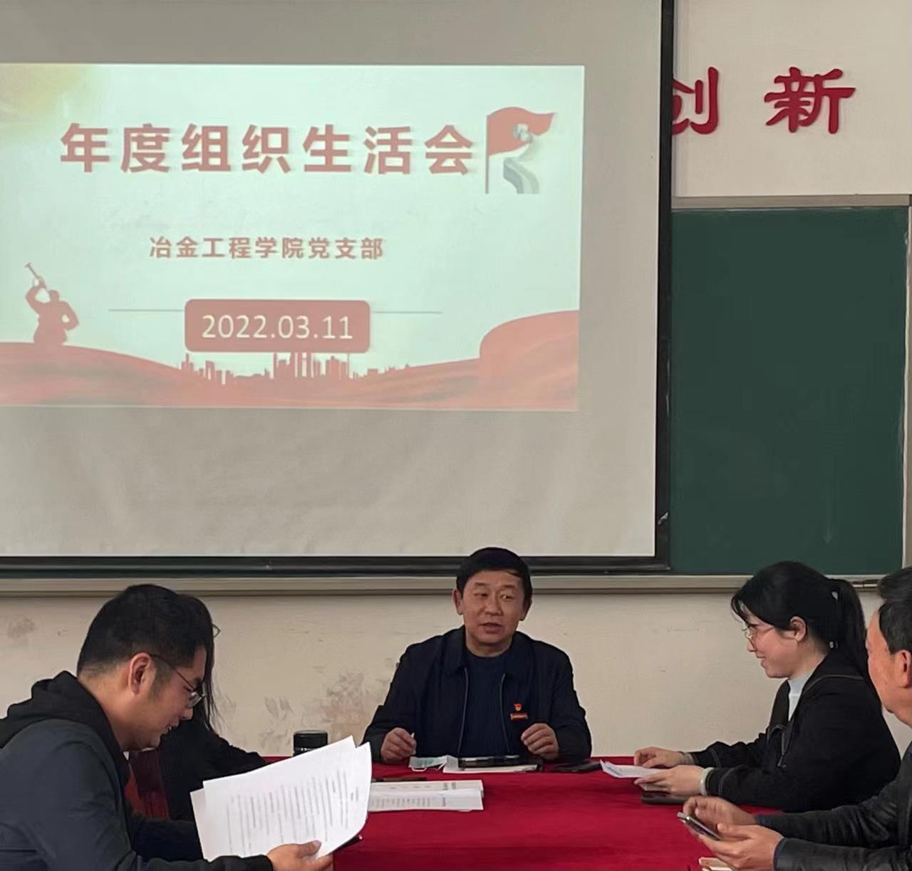 2022年3月11日下午,在新一教208党员活动室,冶金工程学院召开2021年度党支部组织生活会。会议由分院党支部副书记万美茜主持,学院挂点领导谢向莹出席会议,学院党委组织部副部长邬金凤应邀参会。