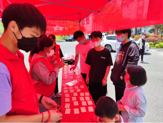 活动现场,志愿者通过知识问答形式,设置了100道关于百年团史的题目,并准备了小奖品,吸引了许多同学前来抢答,现场气氛热烈。与此同时,举行了五四横幅签名活动,用最精彩的实践致敬青春,致敬五四青年节。
