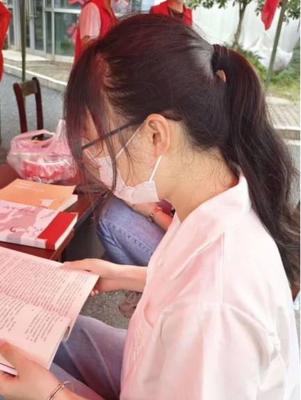 活动中,志愿者给同学们细心讲解红色书籍内容,让同学们从不同层面、不同角度感受红色书籍的魅力。同学们坐在座位上忘我地翻阅着红色经典,感受书中内容的深刻含义,唤醒一段沉眠的历史,将一代代先人的爱国情怀传承下去。