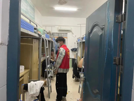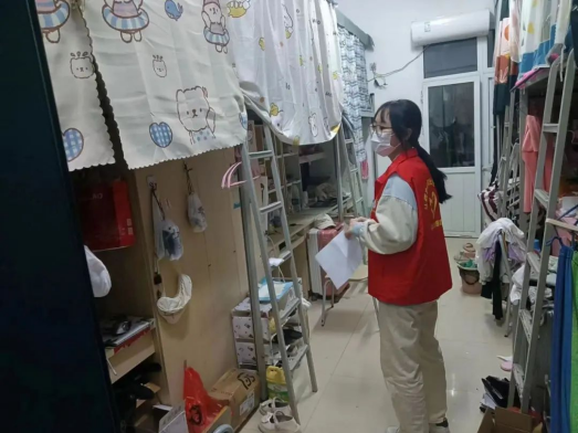 志愿者对学生宿舍内的卫生、床铺安全、违禁物品、电线插板等进行了检查,对于存在问题的宿舍要求积极整改,杜绝安全隐患。