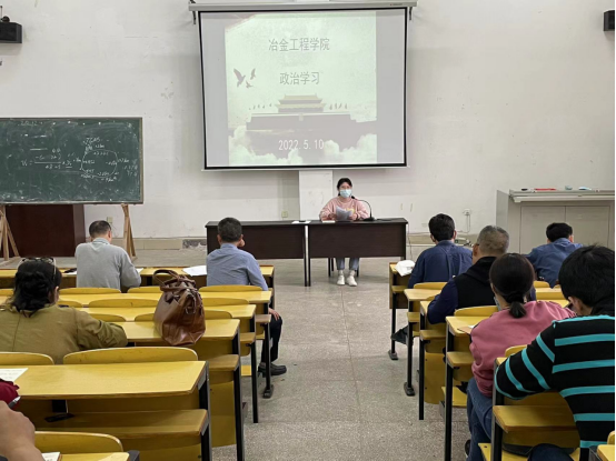 2022年5月10日下午,冶金工程学院在新一教阶梯教室召开政治学习会议。会议由分院党支部副书记、副院长万美茜主持,分院副院长曾伟勇出席,教职工参加。