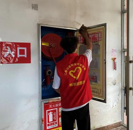 2022年5月18日,冶金工程学院志愿者服务中心在新一教和新一栋各个区域开展了消防器材清洁与检查活动。