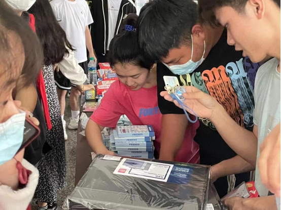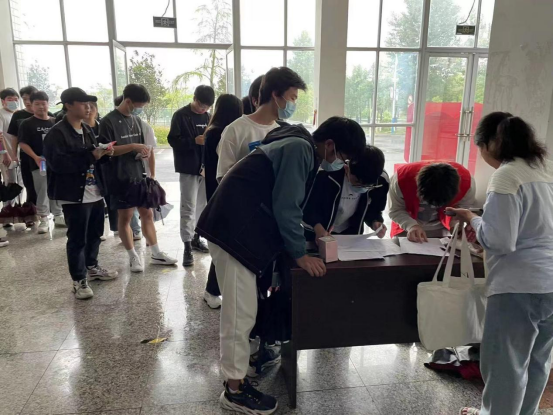 同学们有序排好队,在团总支书记王昱婧老师的带领下,同学们分为三人一队,依次进入礼品区挑选自己心仪的礼物,并在领取区进行登记。整个大厅都充满了欢声笑语,同学们一起分享喜悦。