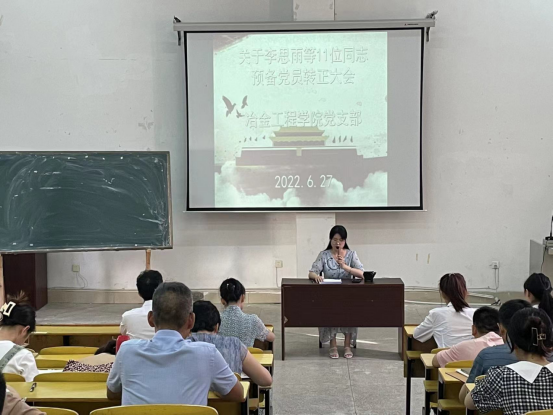 2022年6月27日上午,冶金工程学院党支部在新一教阶梯教室给党员过政治生日。