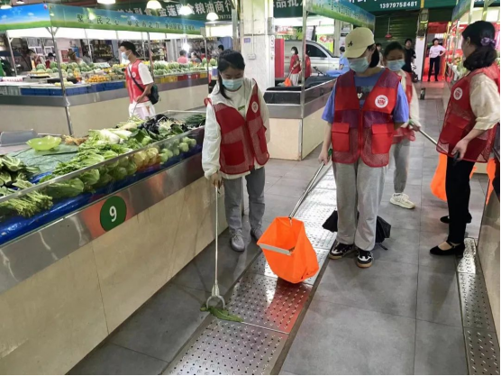 在这炎炎烈日,志愿者们一个个热情高涨,充分展现了不怕脏、不怕苦、不怕累的精神。志愿者们组织有序,分工明确,相互配合,一部分志愿者手持垃圾袋、扫把等工具在梅林大街沿街整理各类车辆、清理各类垃圾,另一部分进菜市场劝导市民们文明采购。通过志愿者们的辛勤劳动街道环境得到了有效的改善。