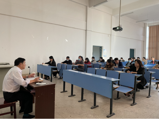 10月11日下午,在党的二十大即将召开之际,冶金工程学院党支部挂点领导、学院纪委书记谢向莹在新一教301教室为支部全体党员上党课,宣讲《习近平谈治国理政》第四卷。专题学习由党支部副书记、副院长万美茜主持,院长曾伟勇出席,支部全体党员参加。