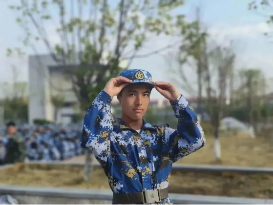 立正、稍息、跨立、敬礼、礼毕、停止间转法、齐步行进与立定等队列训练,意气风发的少年们努力完成教官的每个口令。嘹亮的口号声、振奋人心的踏步声,响彻整个校园。