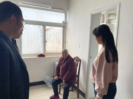 万美茜与老人促膝交谈,详细了解老人的身体状况、饮食起居和家庭情况,向他们致以问候和祝福。