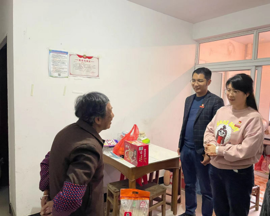 接着,万美茜带队去往河下镇看望慰问老人,送去冶金工程学院党支部的关心和关怀,并送上慰问品。