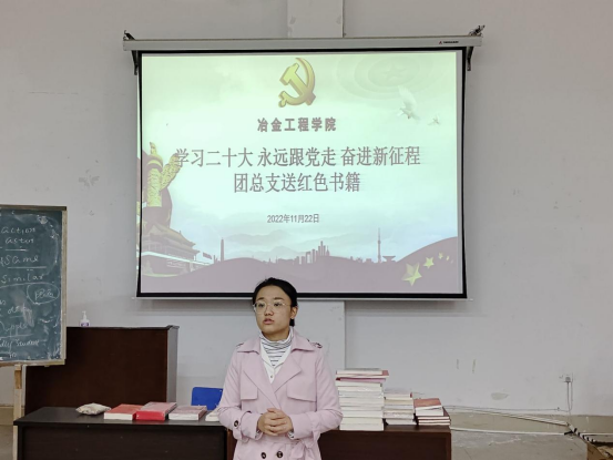 近日,在新一教阶梯教室,冶金工程学院举办以“团总支送红色书籍”为主题的赠书仪式。分院团总支为21个班级赠送红色书籍30册。