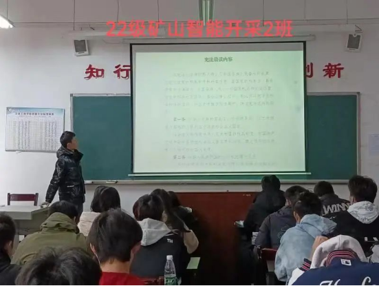 12月2日上午,冶金工程学院45个班级开展宪法晨读活动。同学们精神饱满、神情肃穆、语气坚定、声音激昂,在班级领读员的带领下,一字一句大声地齐声诵读宪法条文,铿锵有力的诵读声在校园回荡。