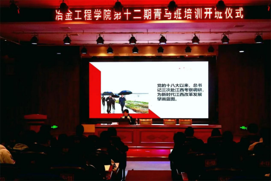 2023年11月30日,在图书馆二楼报告大厅,冶金工程学院第十二期青马班举行开班仪式。青马班全体学员106人参加学习。仪式上,分院党支部副书记、副院长万美茜开讲第一课。