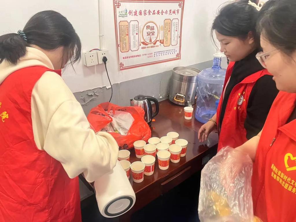 活动中,志愿者亲手泡制了菊花茶,献给在场每一位老人。特地准备了三种重阳糕供老人们品尝,三种口味的糕点分别寓意着三阳开泰、步步高升、长命百岁。