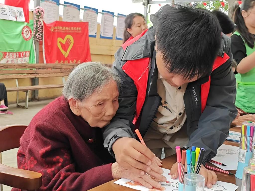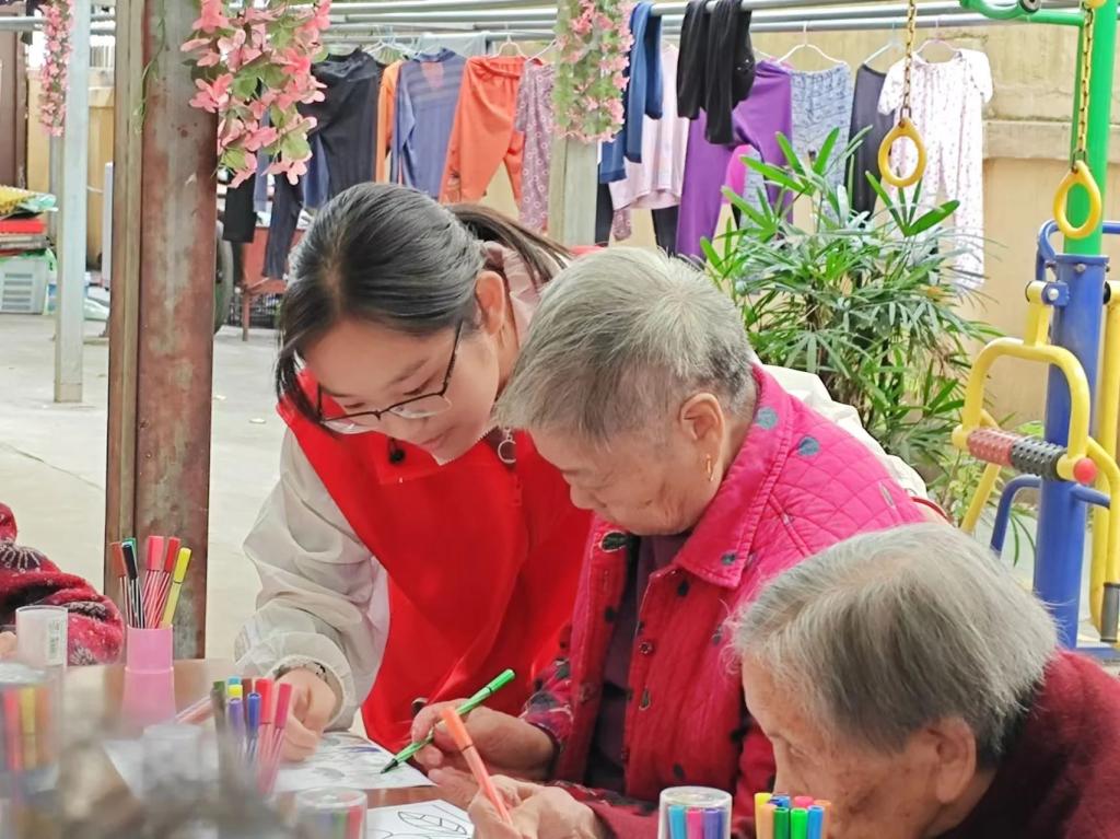 随后,志愿者们还与老人们一起学习绘画。画纸上,斑斓的色彩交织出老人们对生活的热爱与向往,那是他们内心深处最真挚的情感流露。
