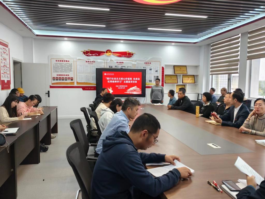 2024年10月22日,冶金工程学院举办了一场宣讲活动。活动以“践行社会主义核心价值观,向身边优秀教师学习”为主题,旨在激发全体教师持续提升个人职业素养与教学质量的热情。宣讲活动前,分院党支部进行了精心策划。
