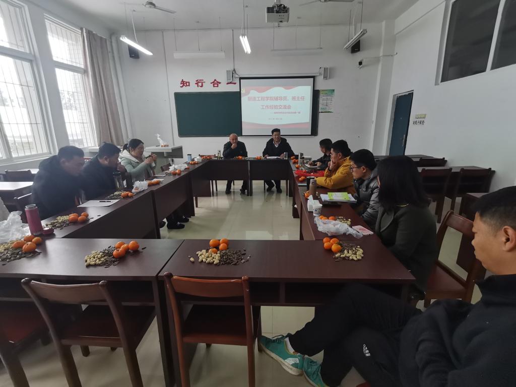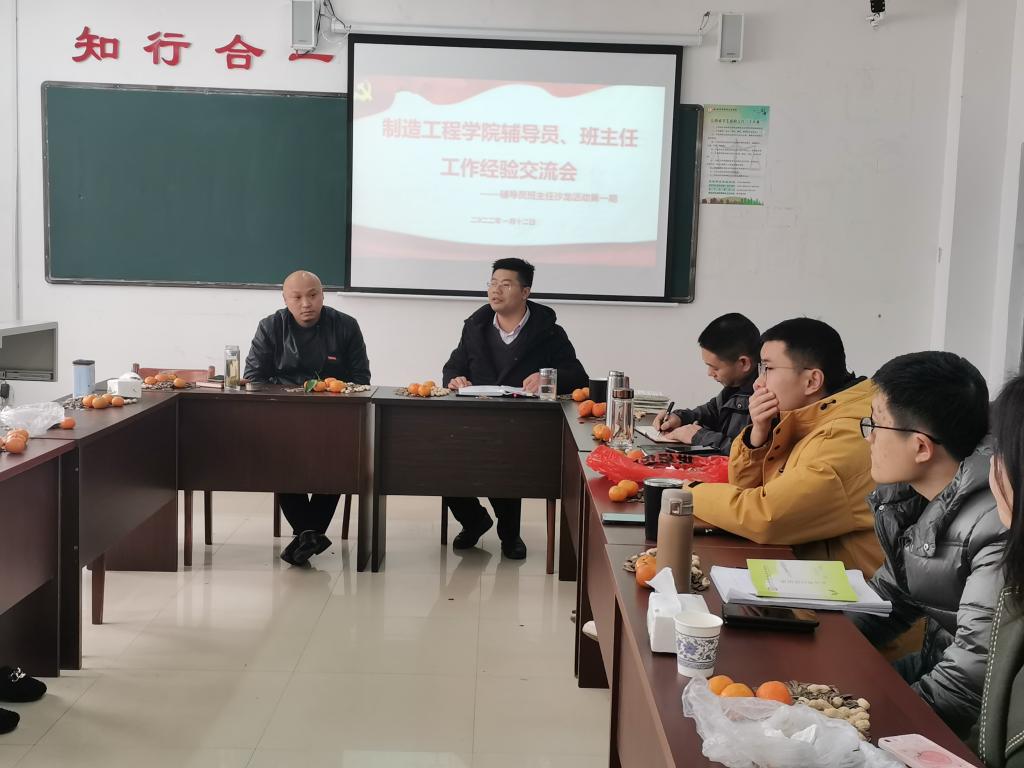 【制造工程学院彭利利报道】为进一步促进辅导员、班主任队伍的快速成长,让分院所有辅导员、班主任共享管理的好方法、好经验,同时进一步提升我分院学生思想道德教育工作水平。2022年1月12日上午8点半,制造工程学院在新二教党员活动室开展辅导员、班主任工作经验交流会。本次交流会由党支部副书记邓纪纲支持,全体辅导员、班主任参与。