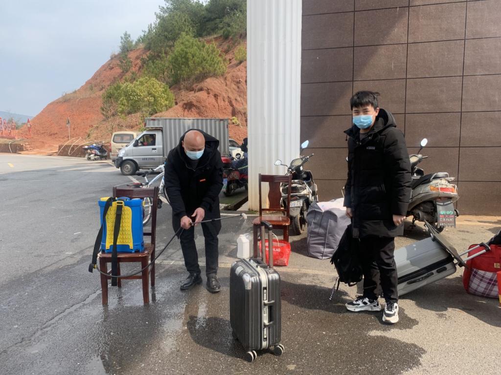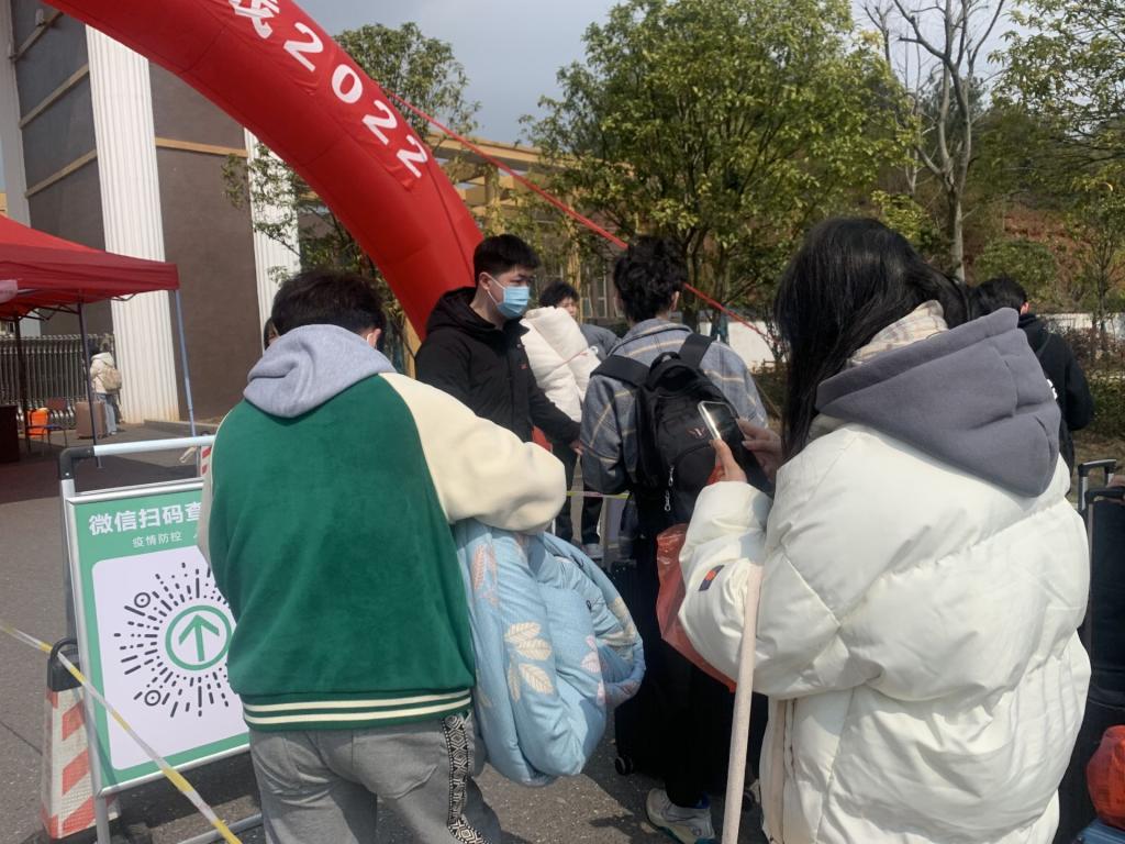 负责接待的教师及班主任个个精神饱满,走向各自岗位,投入迎接返校同学的工作中;还有教师有序地组织学生测温、扫码,省内的同学查看行程码、赣通码,省外同学还需要出示阴性的核酸检测报告并查看返余登记的填写情况;邓书记帮助返校学生进行行李消杀工作,另有教师组织学生安全有序地排队进行入校报到登记。