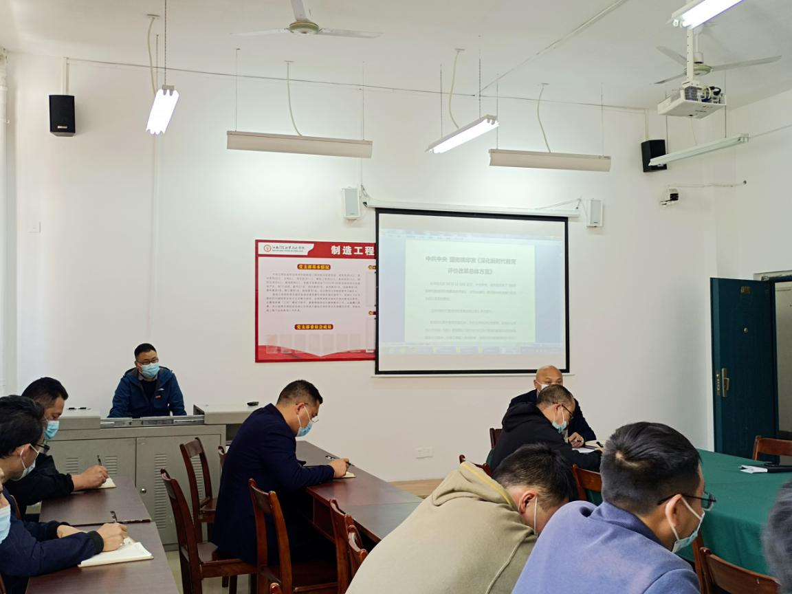【制造工程学院黄茜茜报道】2022年4月19日下午,制造工程学院在新二教党员活动室开展政治学习。会议由分院党支部副书记邓纪纲主持,全体教师参与会议。