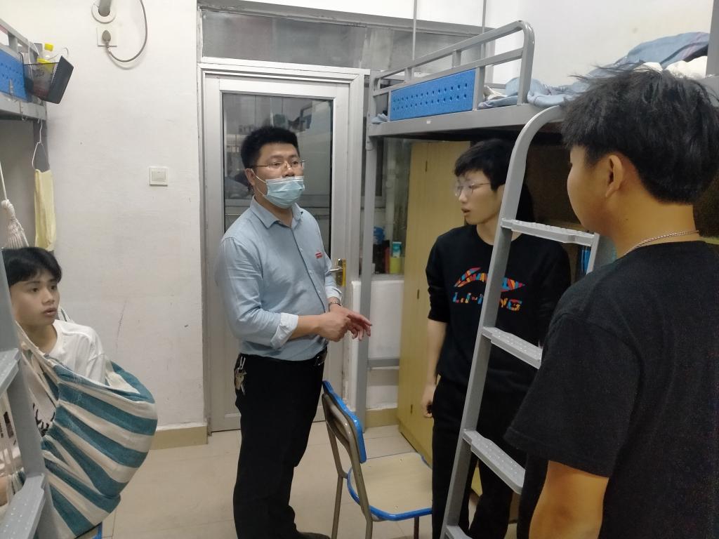 有一次,刘名林老师远在兴国老家的母亲打电话过来说,父亲干活摔跤住院需要做手术,问他能不能回去照顾。他忍着泪水说:“我打电话给姐姐,让姐姐先回来照顾。”安排好后,他又回到了自己的岗位上。此时的他深知,自己不仅仅是一名年迈父亲的儿子,两个孩子的爸爸,更是一名党员,防疫的一线更需要他。作为两个在校班和四个毕业班的辅导员,刘名林老师辛勤的脚步踏遍了校园的每个角落。由于疫情形势严峻,他就通过电话与在外实习的学生谈心,缓解压力,化解焦虑,时常关心了解他们的生活工作情况。针对校内学生,他频繁深入寝室,与同学们面对面交流,叮嘱他们要锻炼好身体,不点外卖,不翻围墙,不违反校规校纪,不给学校疫情工作添乱。为更大地缓解学生因疫情带来的负面情绪,刘名林老师还经常在周末带领班级同学在学校开展丰富多彩的校园活动,同时也培养大家的团结协作精神,提高集体荣誉感,增强团队凝聚力。