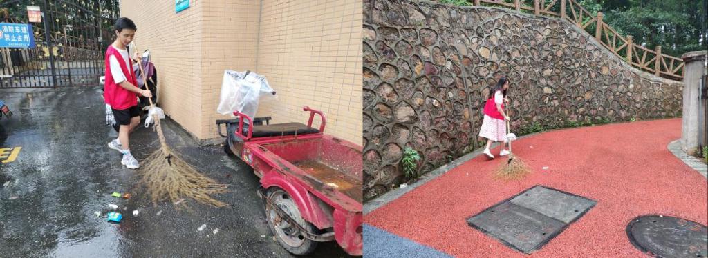 6月17日,心向党实践队队员们坐上清晨首趟前往御天城小区的大巴车,经过一个半小时的路程,到达了“三下乡”社会实践的第一站御天城小区,指导老师王雨与社区负责人进行了简单的沟通。经了解,社区工作人员每日都会定点在小区周边进行安全巡逻,三位队员便毫不犹豫加入巡逻队伍。出发前,王雨老师向队员们强调了实践活动过程中要注意个人安全和防暑,随后队员们穿上志愿者马甲出发了,为小区的治安管理奉献了绵薄之力,巡逻过程中,队员们也熟悉了小区周边环境和大致居民情况。接下来,队员们接到的工作任务是小区环境卫生整治,三位队员拿起劳动工具在不同的区域开始卫生清理,经过队员们的辛勤劳动,小区终于换上了新颜。