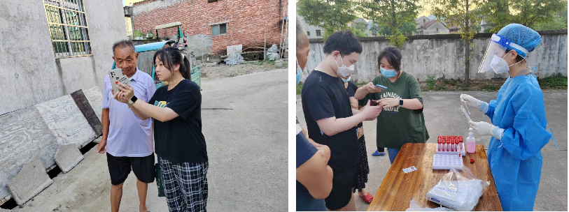 从8月15日开始,每天早上六点半,她开始挨家挨户地进行工作,有住偏远一点地方的还需要跨过大片竹林。等到了傍晚五点半,她开始投身到防疫一线,协助医护人员给村民做核酸检测,查看村民们的健康码,为他们扫码入录身份信息,维持队伍秩序,一直到晚上八点才回到家里。如此高温条件下,她没有抱怨,积极工作,将冶院学子积极向上,无畏艰辛的良好风貌展现在村民们面前,获得了村民们的一致好评。吴佳丽同学表示,作为一名冶院学子,非常荣幸能在家乡有需要的时候,做些力所能及的事情回报家乡。
