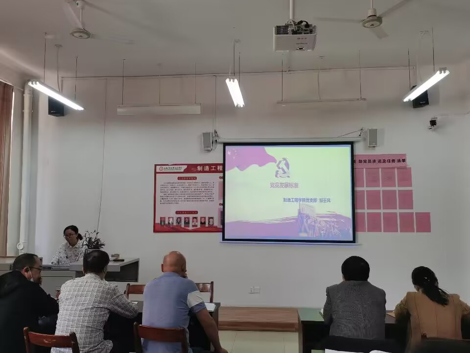 【制造工程学院邹小龙报道】近日,制造工程学院党支部在新二教学楼党员活动室举行了主题党日活动。活动内容为上党课,由党务干事邹壬风老师主讲“党员发展知识”。本次会议由党支部副书记邓纪纲主持,全体党员参加。