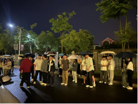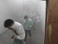 晚上七点四十分整,随着紧急警报拉响,消防演练正式开始。按照方案中五、四、三、二、一的楼层疏散顺序,学生“低头弯腰,捂住口鼻”有序撤离。现场有条不紊,紧张有序。全体师生共同协作,完成了此次消防演练任务,达到了预期目标。