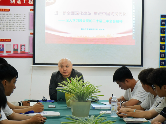 10月11日,制造工程学院在新二教104室召开学习贯彻党的二十届三中全会精神宣讲会,会议由分院党支部书记邓纪纲作宣讲,入党积极分子及新生班班长、团支书共计60余人参会。