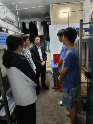 近日,学校党委书记杨乐文来到制造工程学院,深入挂点班级24级机械制造1班教室和宿舍,调研学生思想动态,与学生进行亲切交流。分院党支部书记邓纪纲陪同。