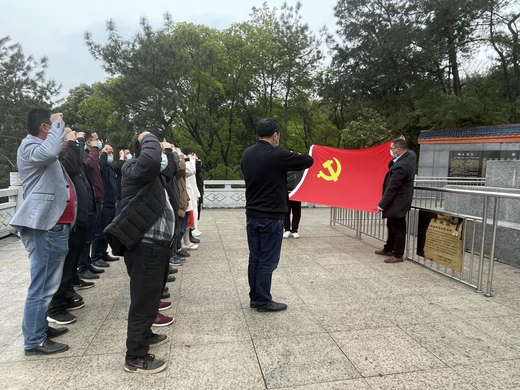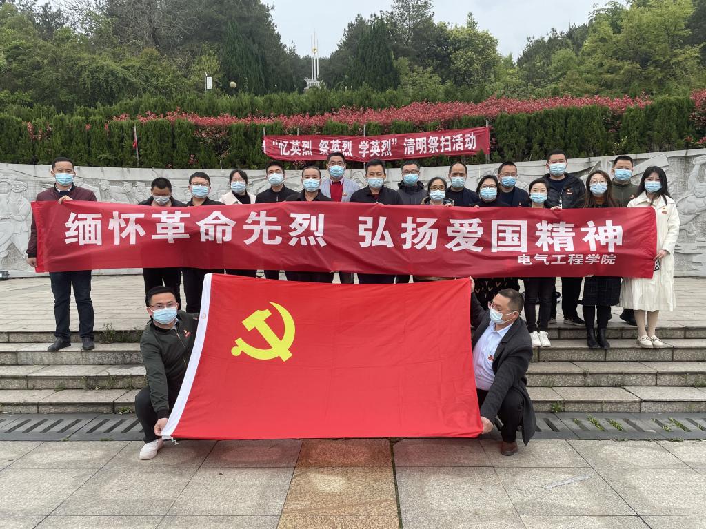 2022年4月1日下午,电气工程学院党支部党员教师前往仰天岗革命烈士纪念碑,开展清明祭扫活动,缅怀革命先烈,弘扬爱国精神。