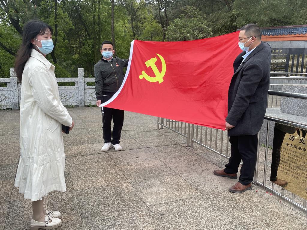接着支部书记刘绍彬带领大家在党旗下重温入党誓词,提醒自己勿忘曾经许下的铮铮誓言。党员代表刘依纯发言表示,要铭记革命历史,珍惜来之不易的幸福生活,牢记身上的责任,爱岗敬业,努力工作。