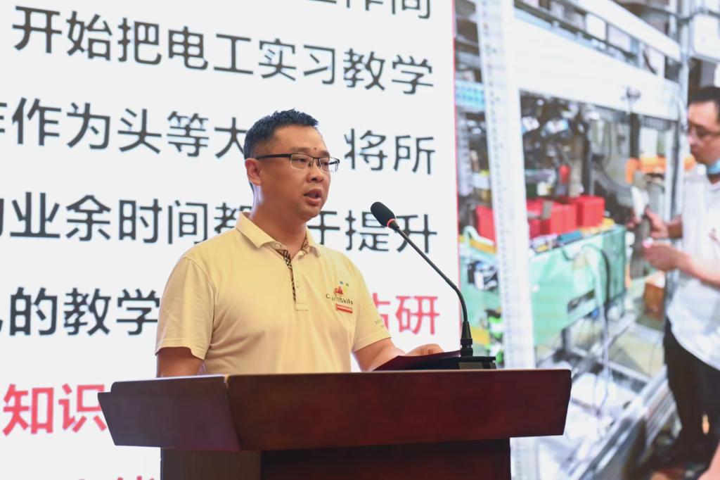 一方面是院领导的高度信任,另一方面是对三尺讲台的向往和热爱,于是,他毫不犹豫接受了这项任务,在继续做好电工维修工作的同时,开始把电工实习教学工作作为自己的头等大事。他深知做好教学工作并非易事,只好所有业余时间都花在提升教学能力上。每次上课前,他都会在记录本上整理一些电工维修工作要点,作为案例给学生讲解;每当遇到困难,他就拿起电工书籍查阅,或到已退休的电工老师傅家里向他请教。半年后,他的教学能力不断提高,快速成长为业务骨干,并在2004年指导学生获省职业技能大赛一等奖。