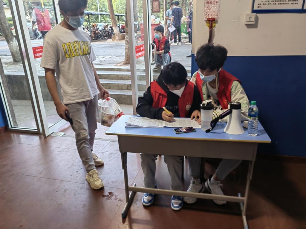 他们在核酸采样点、宿舍楼、食堂等地定点值班,维持秩序、登记信息、分发食物、巡逻站岗……一抹抹志愿红成为了校园各处最亮丽的风景线。他们以一张张疲惫而灿烂的笑脸展现了属于电气青年的积极向上的精神状态。