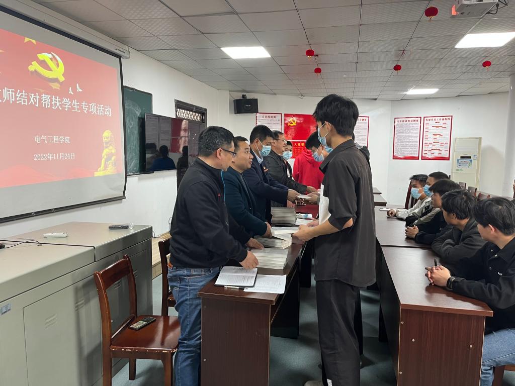 2022年11月24日中午,在明辨楼312室,电气工程学院党支部开展党员教师结对帮扶学生专项活动。学院院长郭志江参加活动,并讲话。