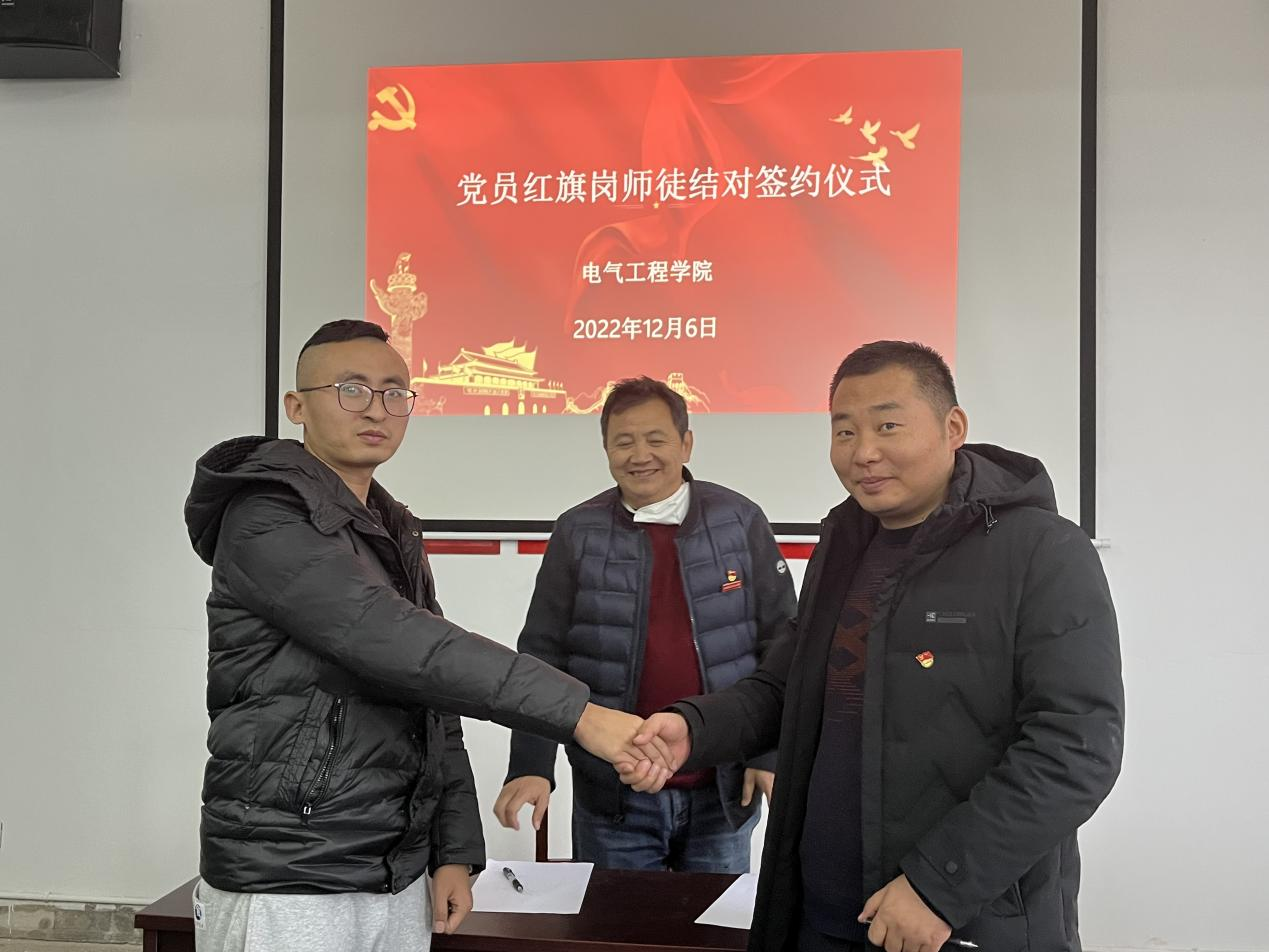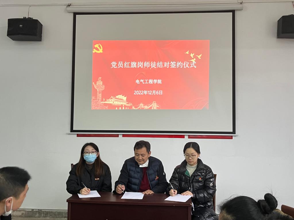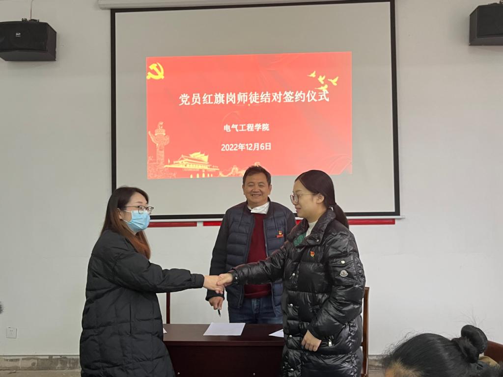 2022年12月6日下午,在明辨楼102党员活动室,电气工程学院举行党员红旗岗师徒结对签约仪式。按照党员红旗岗的工作要求,新进教师都找到了各自的师傅。仪式由电气工程学院党支部书记刘绍彬主持,全体党员参加。
