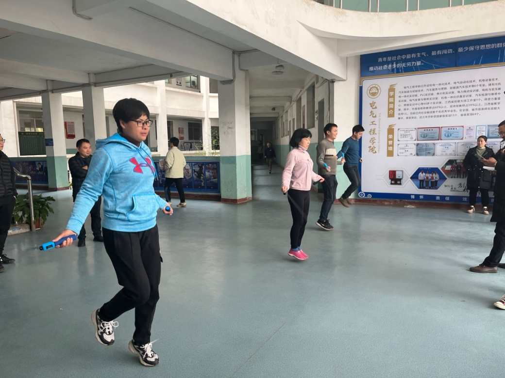 3月21日下午,在第四教学楼一楼大厅,电气工程学院开展了教职工跳绳比赛。