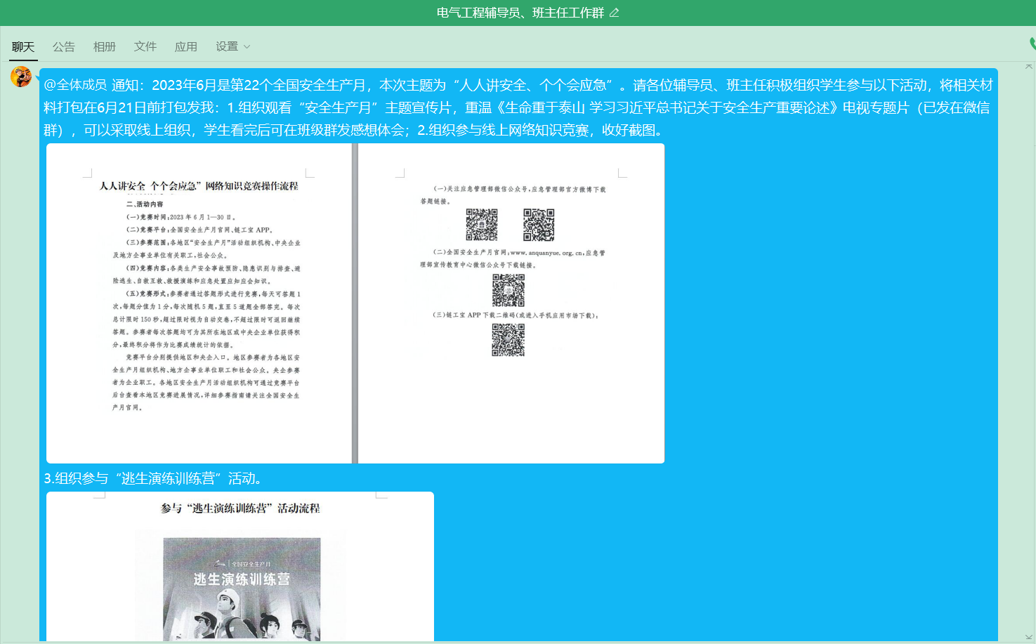 1.加强宣传教育,提高安全意识。通过一系列宣传教育活动,提高师生安全意识,形成“人人讲安全、个个会应急”的良好氛围。召开“安全生产月”专题会,利用电子显示屏播放第22个全国“安全生产月”主题,微信公众号宣传安全生产月相关知识,营造良好氛围。