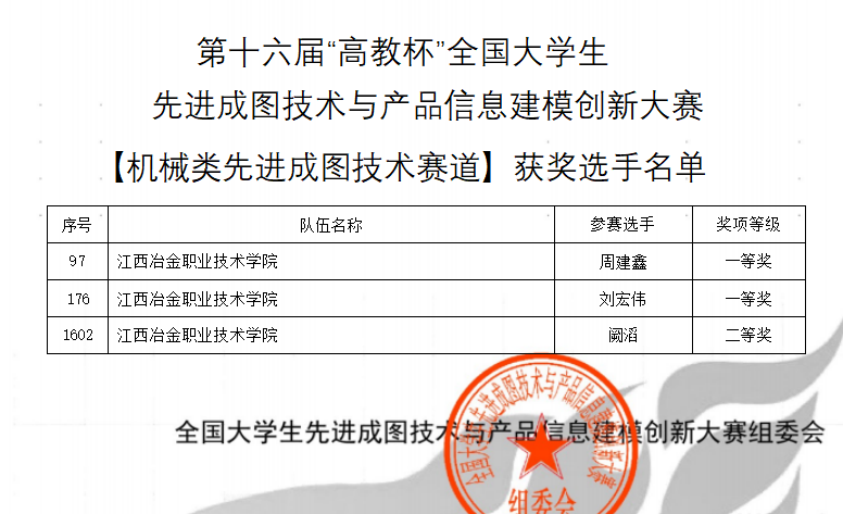 8月6日,第十六届“高教杯”全国大学生先进成图技术与产品信息建模创新大赛组委会公布获奖名单,我校参赛的三名学生喜获一等奖两项、二等奖一项。